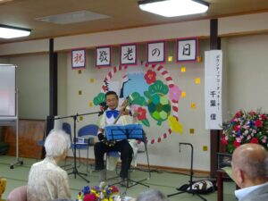 敬老会の催しはスコップ三味線🪕初めて見る演奏に皆さん手拍子をしながら楽しまれていました🎵