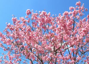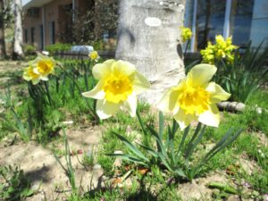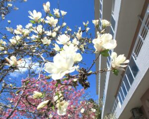 施設の庭にある桜とコブシの花が見ごろになりました。